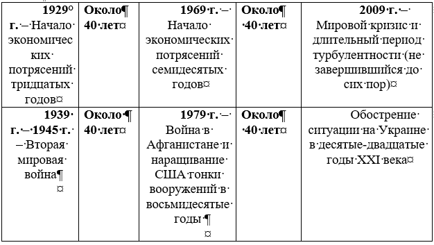 Современная гипотеза о наличии исторической цикличности длительностью около 40 лет в экономике и геополитике (в упрощённой форме)