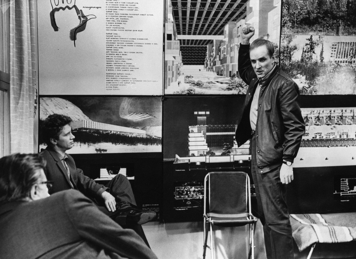 Герасимов исследует социум через искусство архитектуры, практику градостроения. Он точно выявляет суть конфликта – между величием замысла и реальностью. Архитектор всегда фигура зависимая, обстоятельства требуют от него упрощений, компромиссов. Где их граница?