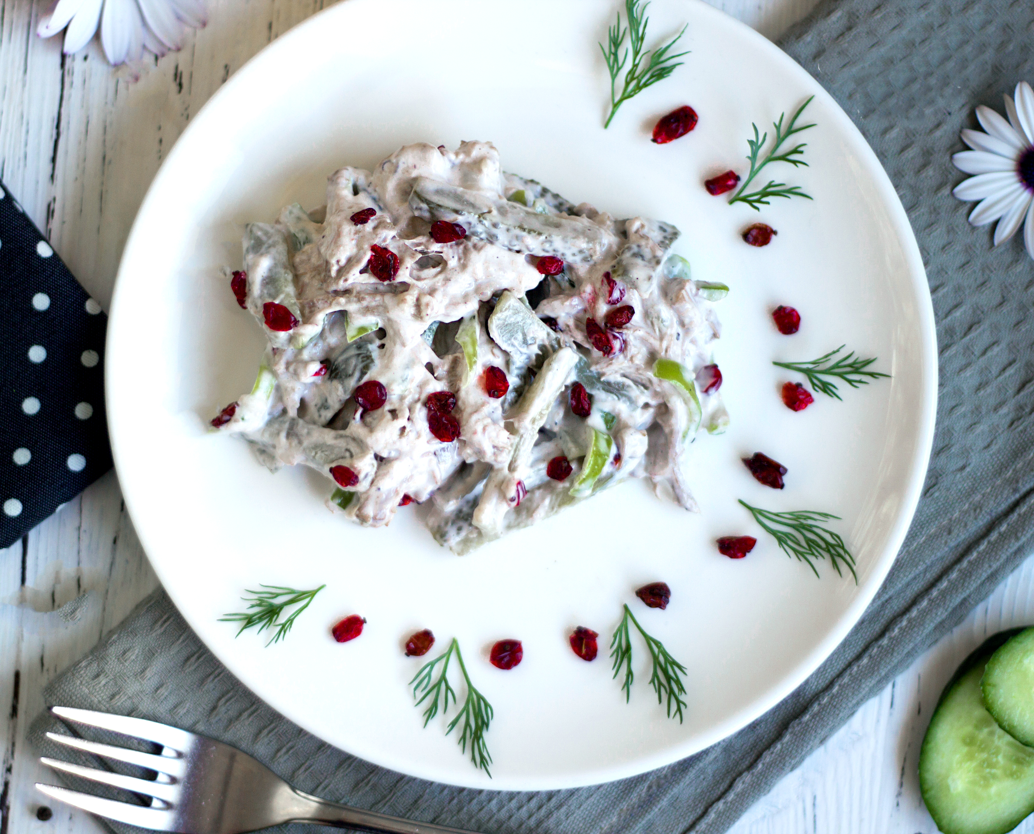 Нежный, сытный и нарядный — этот салат удачно сочетает знакомые вкусы в новой интерпретации