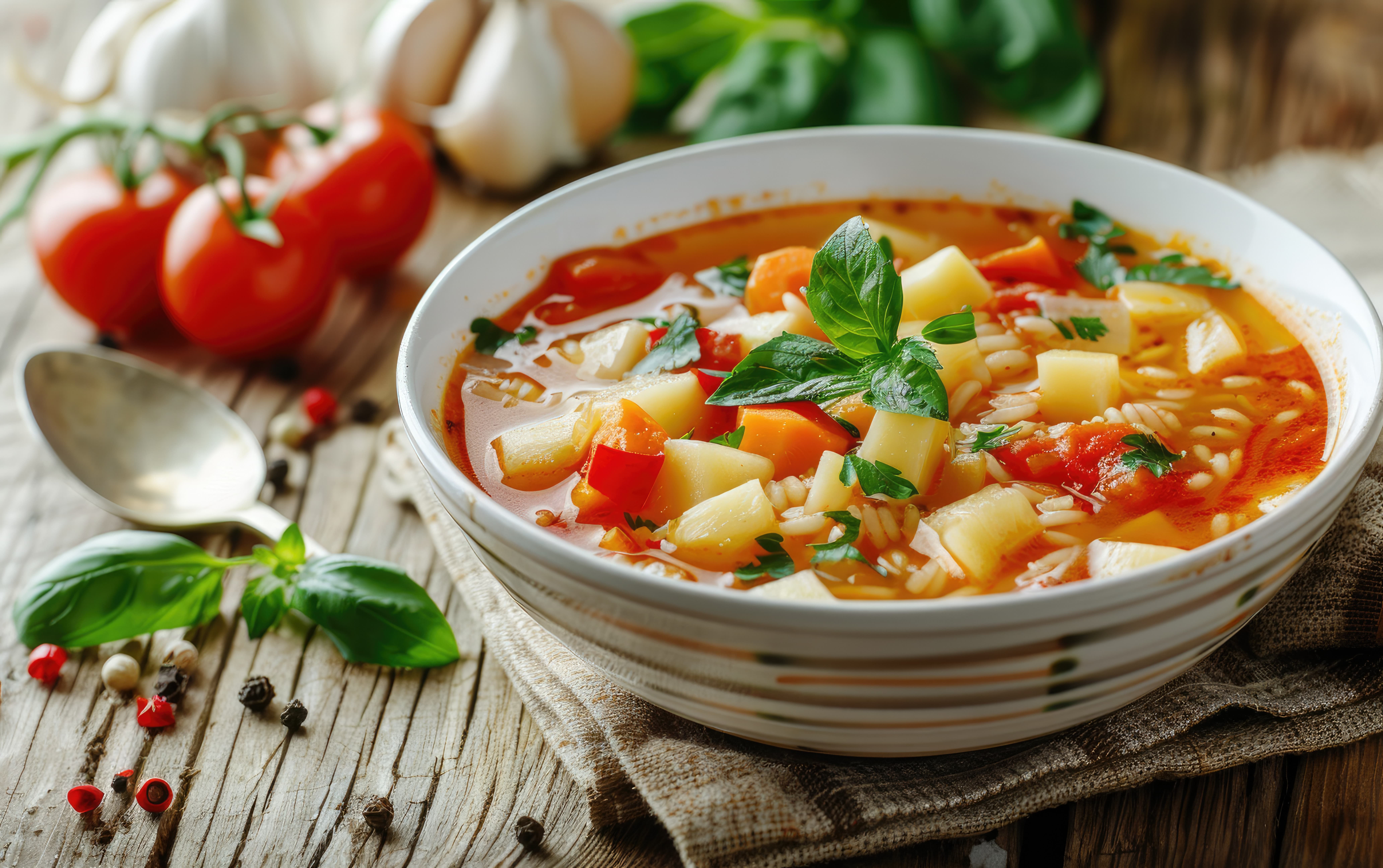 Лёгкий и полезный суп с сезонными овощами и фасолью...