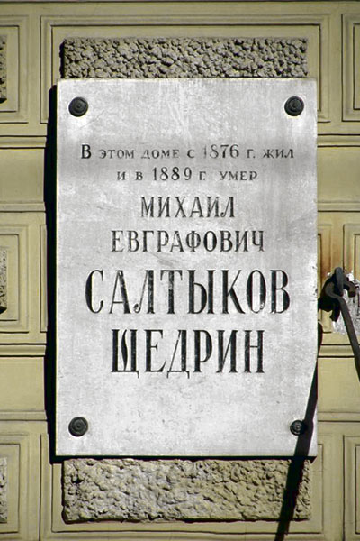 На стене здания под № 60, что на Литейном проспекте Санкт-Петербурга, соседствуют две мемориальные доски. Одна свидетельствует о том, что здесь в 1876–1889 гг. жил и умер великий русский писатель-сатирик Михаил Евграфович Салтыков-Щедрин. Другая сообщает, что в доме бывала не менее значимая историческая персона – Владимир Ильич Ленин.