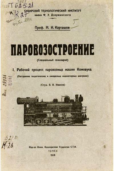 Николай Иванович был увлечён, помимо прочего, историей, понимал, как важно прослеживать эволюцию научных представлений о том или ином явлении. Особенно остро его интересовал период промышленной революции начала XIX века, когда, собственно говоря, зарождались железные дороги. Размышления о техническом прогрессе, о необходимости расширять возможности человека легли в основу книги профессора Карташова «История развития конструкции паровоза», которая вышла в свет в середине 1930-х. Исследователь считал, что историю двигателя, историю технологий следует рассматривать в контексте экономической и социальной картины. «Чем полнее она будет, тем точнее мы определим задачи, которые стоят перед инженерами», – полагал он. Сохранились даже воспоминания о том, как маститый профессор, которому уже было далеко за 60, вместе со студентами приходил на лекции по общественным наукам, чтобы восполнить кое-какие пробелы в знаниях. Он считал, что между технической и гуманитарной мыслью нет непреодолимой преграды.