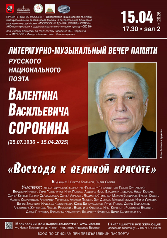 15 апреля состоится вечер памяти Валентина Васильевича Со...