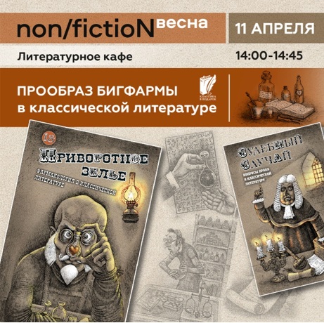 На Международной ярмарке интеллектуальной литературы non/fiction весна в Москве 11 апреля в «Литературном кафе» (14.00-14.45) пройдет мероприятие «Прообраз Бигфармы в классической литературе. Судебный случай». Модераторы — куратор серии «Классика в подарок» издательства «Городец» Елена Пучкова и художник серии Иван Иванов. Присоединятся к дискуссии глава ИД «Городец» Наталья Треушникова, профессор Владимир Бородин, а также научный редактор-составитель серии «Юридическая литература» Леонид Афанасьев вместе с профессором МГУ Дмитрием Шустровым.