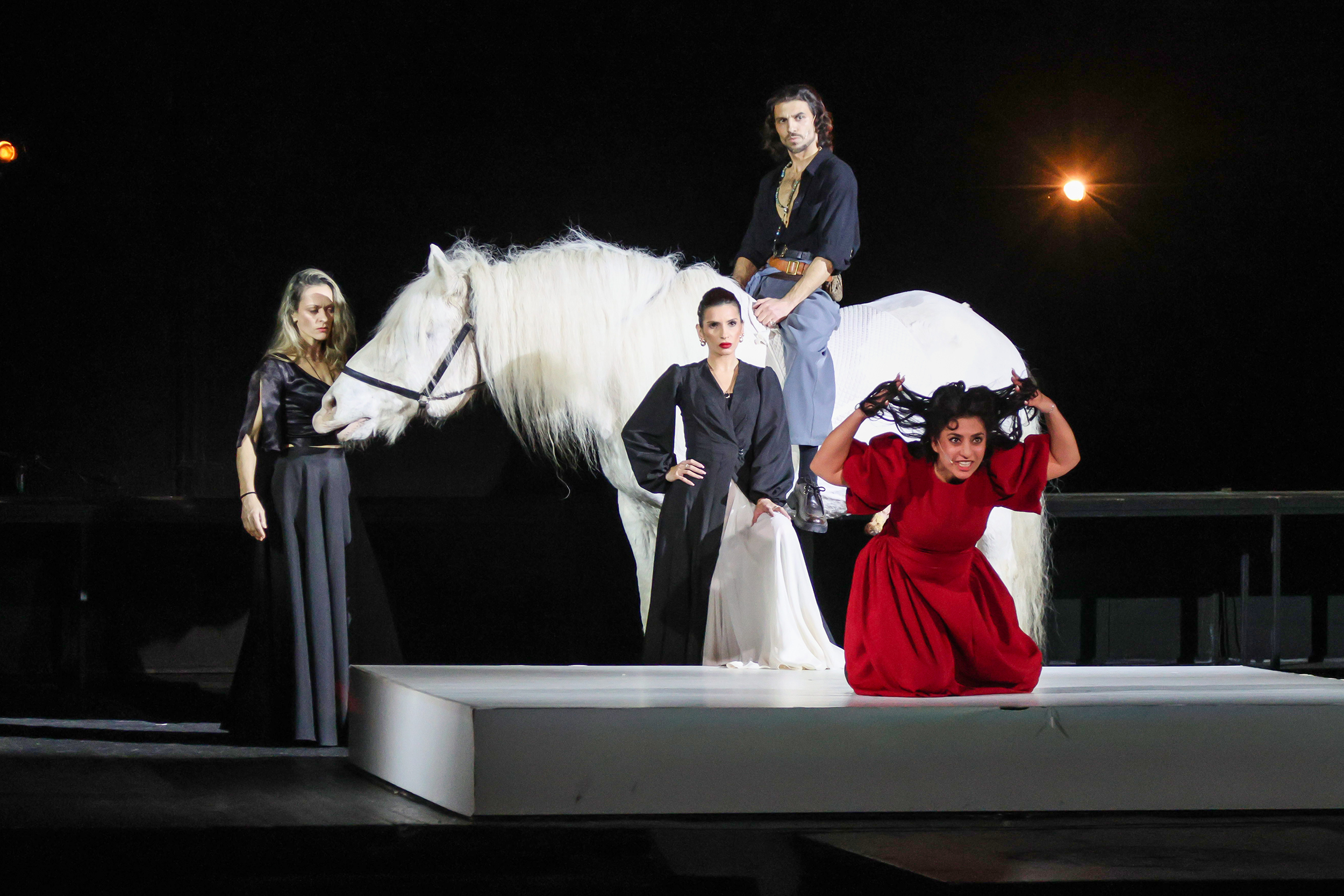 Палитра постановки не имела полутонов, только самые яркие краски — чёрное, белое, красное. Материи, из которых сложилась вещественная картина цыганского мира, — сукно, бархат, шёлк. На сцене был и белоснежный конь — живой символ самобытной культуры вольного народа, яркий акцент, который усилил чувство правды в этой истории.